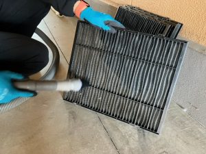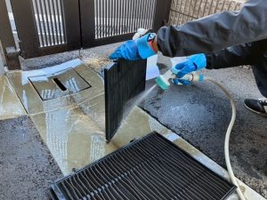 エアコンフィルターの清掃を丁寧に行っています。